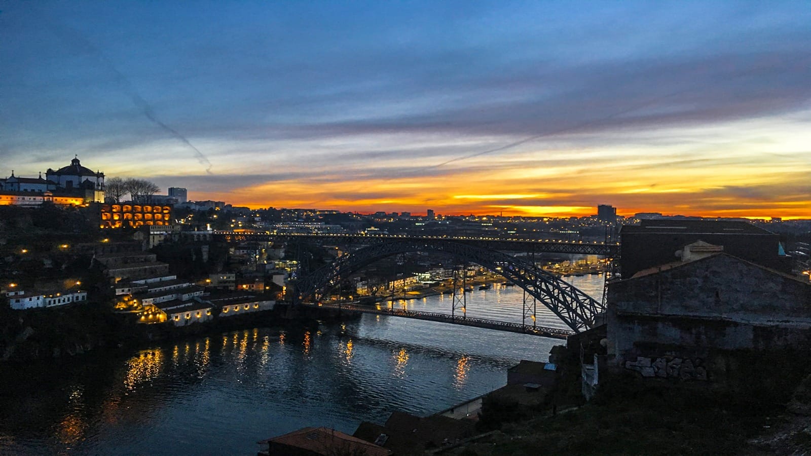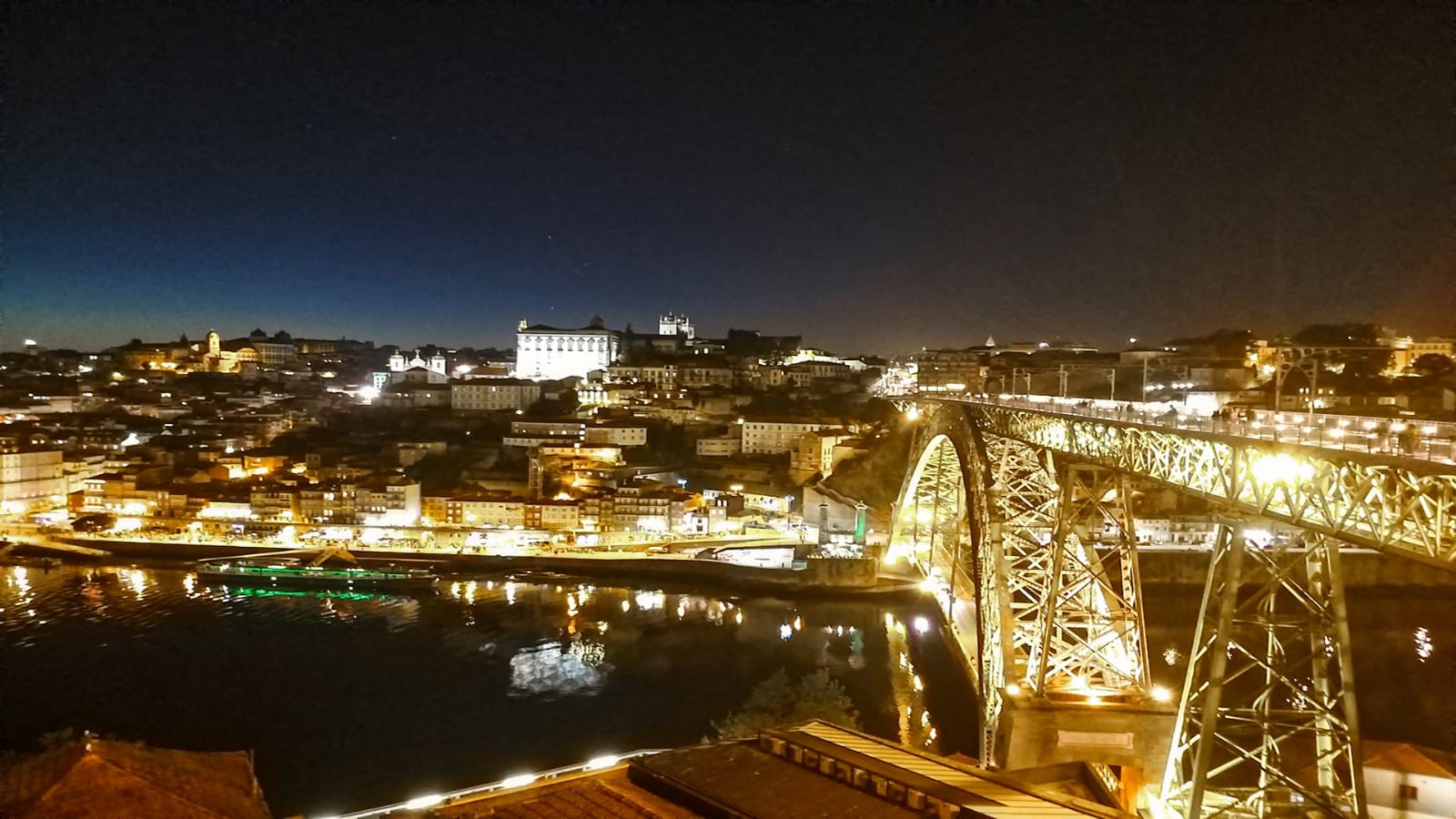 A noite não estaria completa sem um passeio panorâmico pela cidade iluminada, passando por marcos icônicos como a Ponte Dona Maria Pia e a animada rua Galerias de Paris, famosa pelo seu ambiente vibrante.