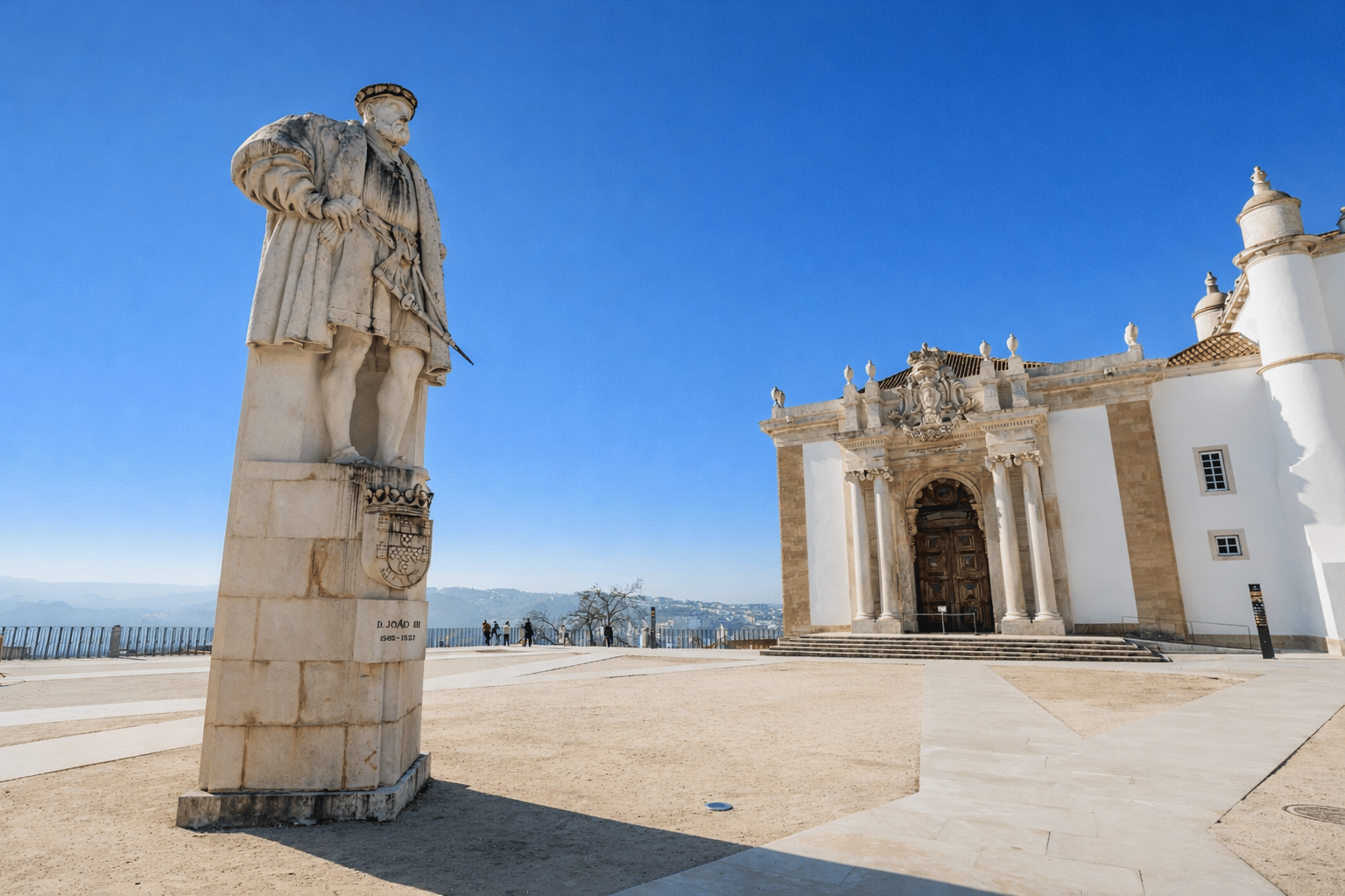 A estátua de D. João III ergue-se no Paço das Escolas, em frente à histórica capela da Universidade de Coimbra.