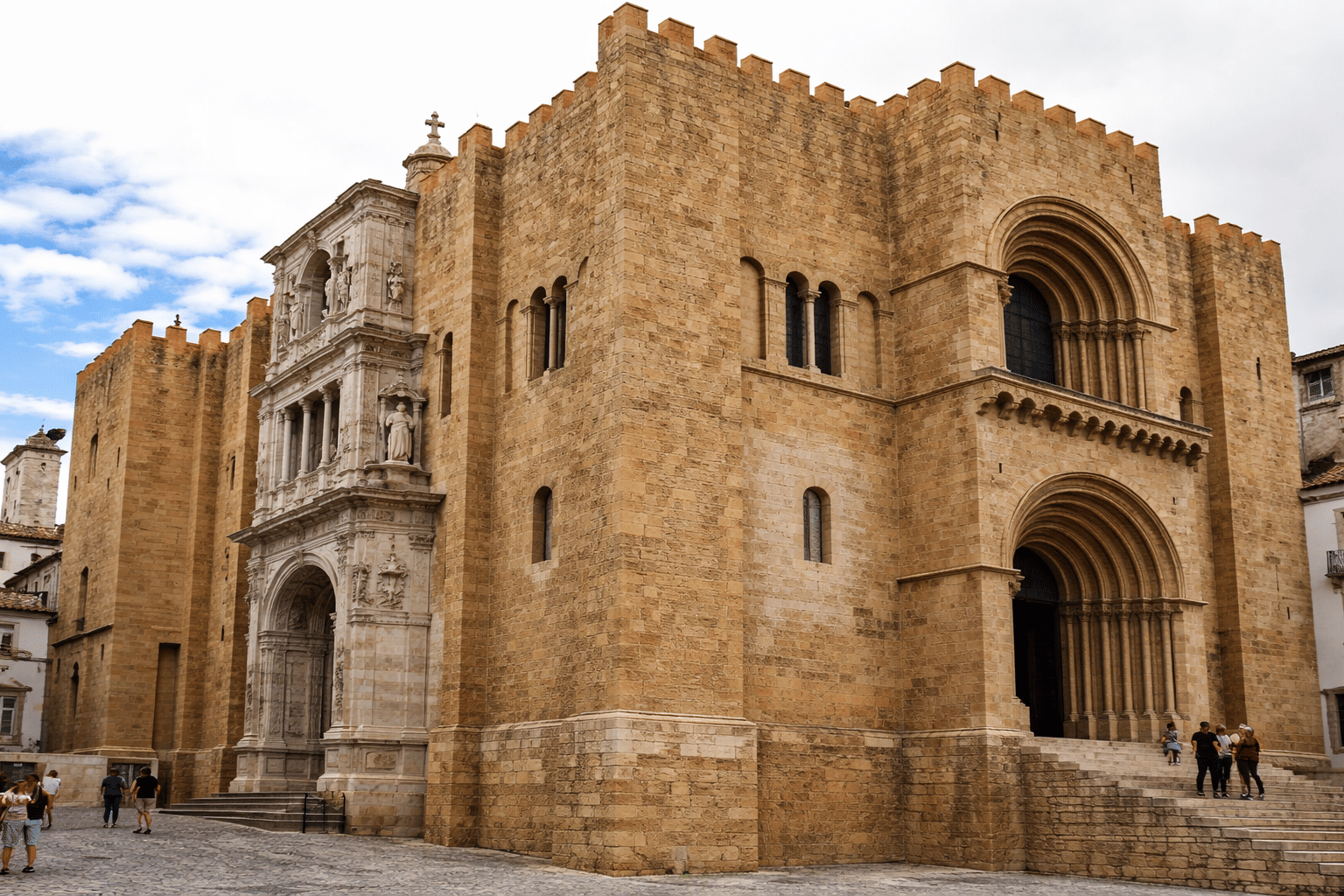 A imponente Sé Velha de Coimbra ergue-se como uma fortaleza, símbolo das origens medievais da cidade.
